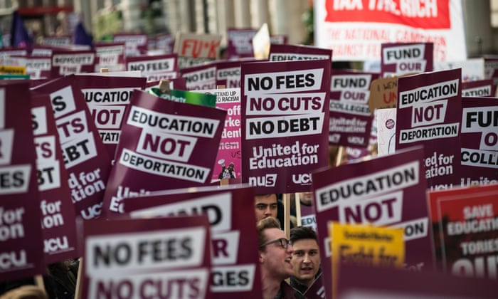 United for Education demonstration, in 2016. Universities are a big business now. Photograph: Alamy Stock Photo