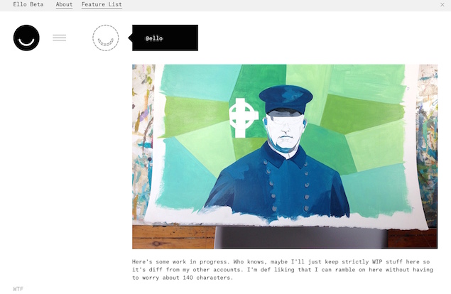 This doesn’t mean that Ello is doomed, or even that Ello isn’t worth using. But at present, it doesn’t feel like it meets the needs of a wide base of users. If you’re a designer, or someone who wants to present his or her visual work, then Ello looks like a great place to be. The @ello account which highlights content from around the network shows this. Artists who want to share their work in progress and talk about their process seem to like Ello.