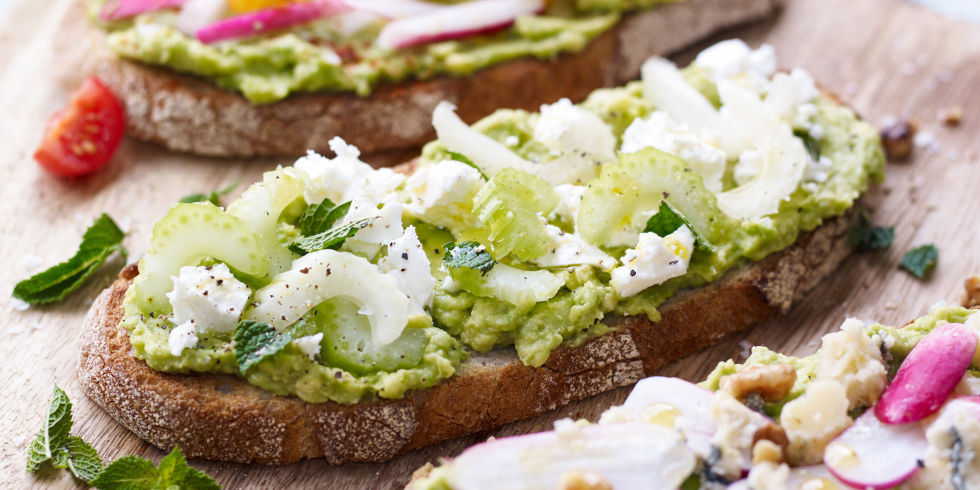 - Spread the celery slices over the avocado then sprinkle with the feta and torn mint leaves.