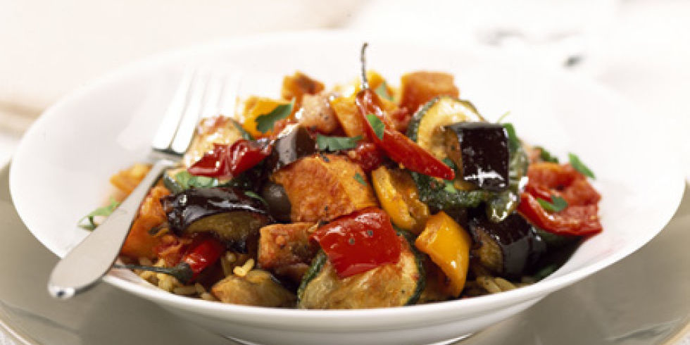8. To serve in a neat shape, put a 7.5cm (3in) plain cutter on a serving plate, spoon in the ratatouille and lift up the cutter.