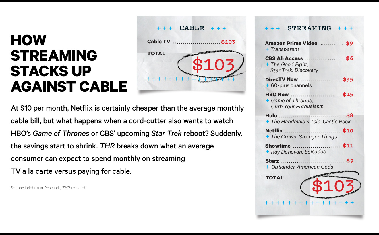 Perhaps Disney ought to combine its two upcoming streaming services into one, say some observers, then let those other purveyors of cable networks beg Disney to be a part of that skinny OTT bundle. “There are many investors who believe that Disney, more than any other company, is responsible for holding what’s left of the bundle together,” writes Juenger. “Disney might be trying to set up a dynamic of, ‘Give us good terms next time around, or we’re going around you.’ Of course, that could also backfire: ‘Since you’re obviously on your way to going around us, we’re dropping you, good luck.’ We could see this playing out either way.”