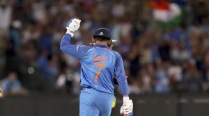 India’s M.S. Dhoni celebrates hitting the winning runs against Australia during their one day international cricket match in Adelaide, Australia, Tuesday, Jan. 15, 2019. (AP Photo/James Elsby)